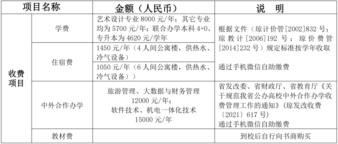 5.与热海院联合办学本科(4+0)的学生,学费由热海院收取,住宿费由学院收取(需通过手机微信缴住宿费),贷款选择转入“海南热带海洋学院”。