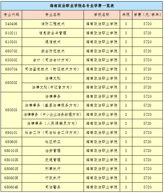 按照海南省物价局、财政厅和教育厅规定的收费标准对学生进行收费。