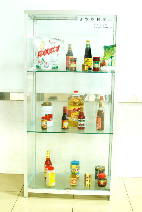 一、严把采购关:食堂所有原材料均由具有合格资质的供货企业中提供,采用海南及至全国的知名品牌产品。食堂设立原料展示柜,将原材料公开展示,接受师生监督。