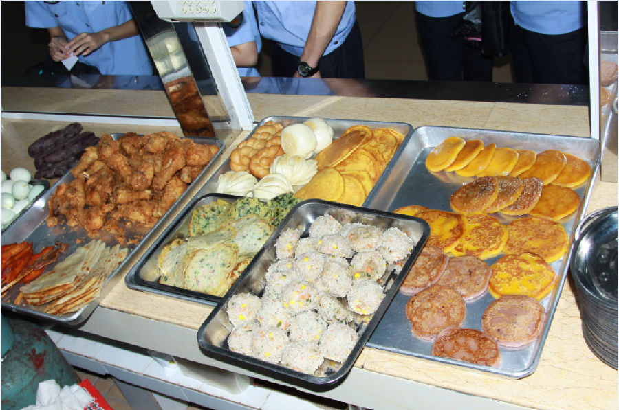 三、严把食品加工关:食堂原料的加工功能区划分清晰,分有清洁操作区、准清洁操作区、一般操作区。所有蔬菜均经充分清洗、浸泡、仔细清理,并做到荤、素分类清洗、存放,原料在加工过程中都做到了生熟分开。所加工的成品也做到了及时使用。并且,学院食堂严格按照食品卫生安全要求,严格控制食品添加剂的使用,所有糕点一律不使用食品添加剂,以达到绿色环保健康的要求。