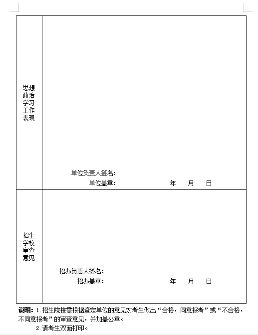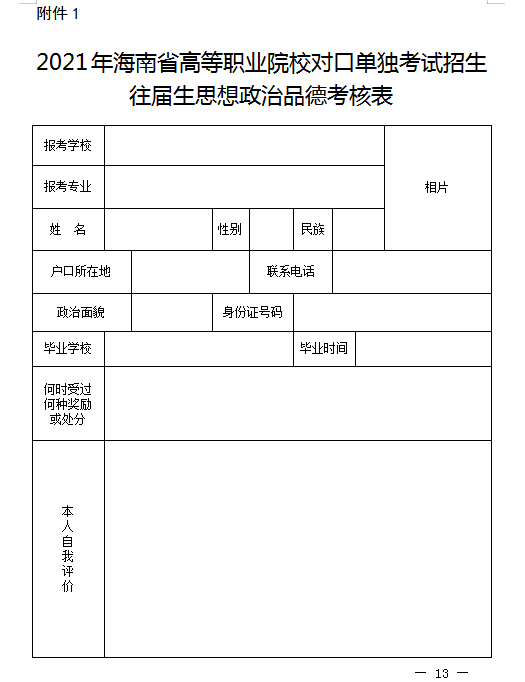 2021年海南省高等职业院校对口单独考试招生往届生思想政治品德考核表