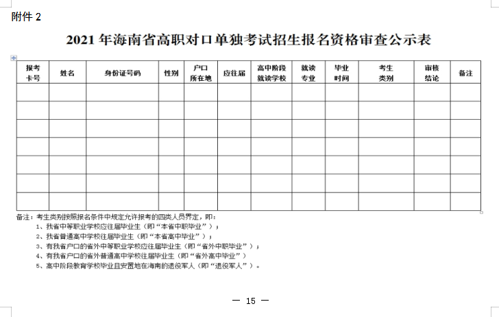 附件:1.2021年海南省高等职业院校对口单独考试招生往届