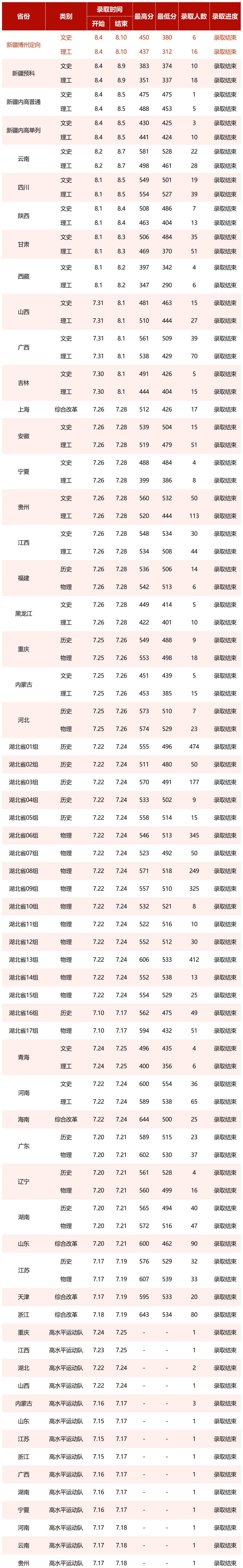 (*标红字体内容为当天录取进展更新)