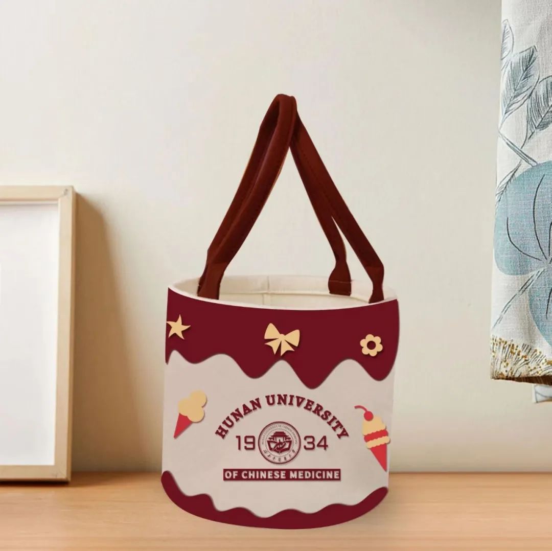 包类有辐射包、毛毡包两种材质。辐射包迎合了年轻人的审美要求,紧跟潮流。还以中医四诊“望闻问切”为主题,进行国风设计,实现了审美性、文化性与实用性、功能性的统一。毛毡包有大容量的棕色手提包和小容量的红色水桶包。将湖中大的元素与许多可爱少女的元素融合,更体现了文创产品的创新之处。