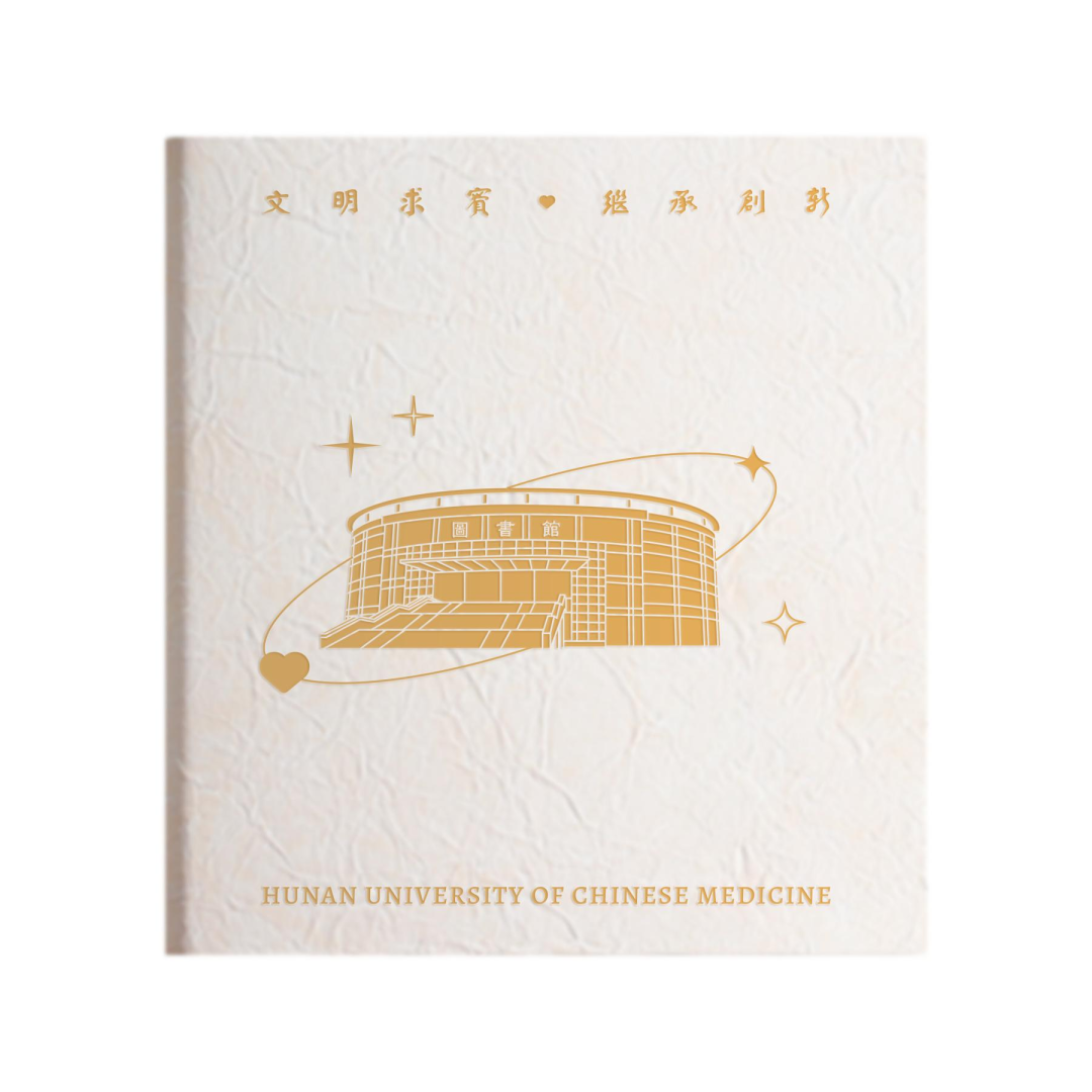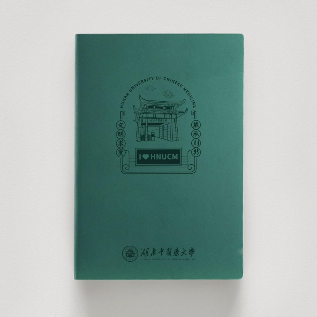 这款记事本以湖南中医药大学东塘校区的校门为主题,将纸张和建筑元素巧妙融合在一起,并且有蓝、紫、绿、粉四种颜色供大家选择,鼓励学生们积极记录自己的成长历程,并鼓励他们向前迈进。