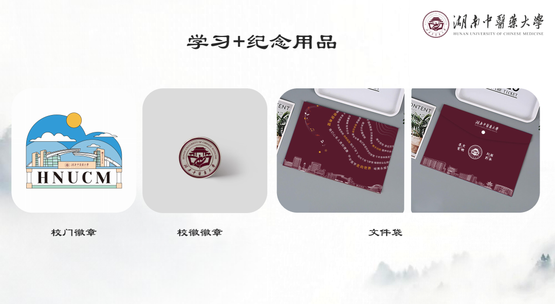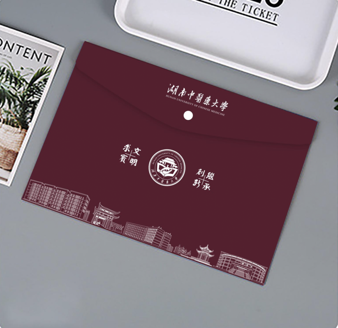 这款文件袋正面主题为湖中大校徽与校训,背面主题为湖南中医药大学校歌《放飞梦想》,徽章分为校徽徽章和校门徽章两种,淋漓尽致地展现了湖中大的优秀校园文化。