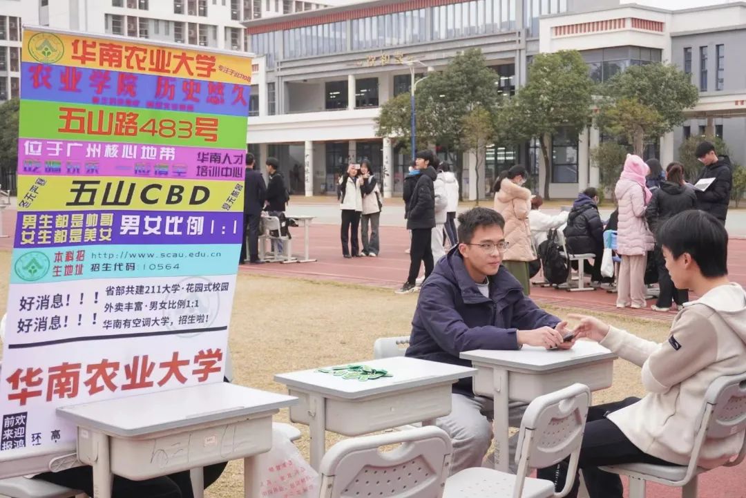 与此同时,会场的宣讲也在有条不紊的开展,二组成员向学弟学妹们全方位地介绍了华农的校园历史和文化特色,以及大学生活和学习经验,让他们了解大学的校园文化、学科特色、招生政策等资讯。大家全神贯注,认真听讲,被华农的环境和教学模式深深吸引,对华农的招生政策等内容也有了基本的了解。