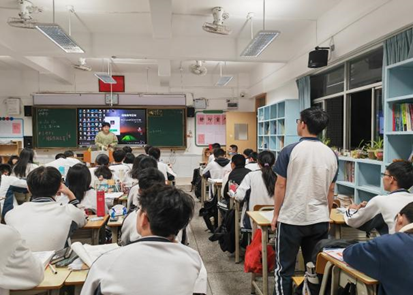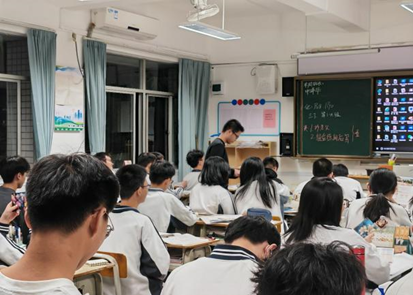 随后是进班宣传活动,宣讲从学校概况、校园风景、生活环境、专业介绍、招生政策等五个方面开展,并详细介绍了校园美景和华农特色食堂及餐厅,解答关于华农的基本情况和衣食住行等相关问题,简洁明了地勾勒出华农生活剪影,以便同学们更好地了解华农、报考华农。为增强活跃度,队员们还为积极参与互动的同学这边了精美的华农周边。同时,队员们也从学习、生活角度出发,分享自己在大学里的学习和生活。短短十几分钟带领同学们走入校园,提前体验大学生活,激励着他们积极备考。