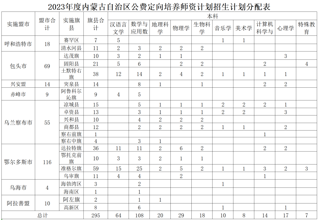 ” 其他“ 本简章依据《关于印发<内蒙古自治区公费定向培养师资计划工作实施方案(试行)>的通知》(内教教师字〔2019〕36号)、《关于印发<内蒙古自治区优秀教师定向培养专项计划工作实施方案(试行)>的通知》(内教教师字〔2021〕75号)文件和内蒙古自治区教育厅印发的《关于下达2023年自治区优秀教师定向培养专项计划和公费定向培养师资计划招生计划的通知》(内教师字[2023]24号)文件精神制定,如有不符,以文件为准。