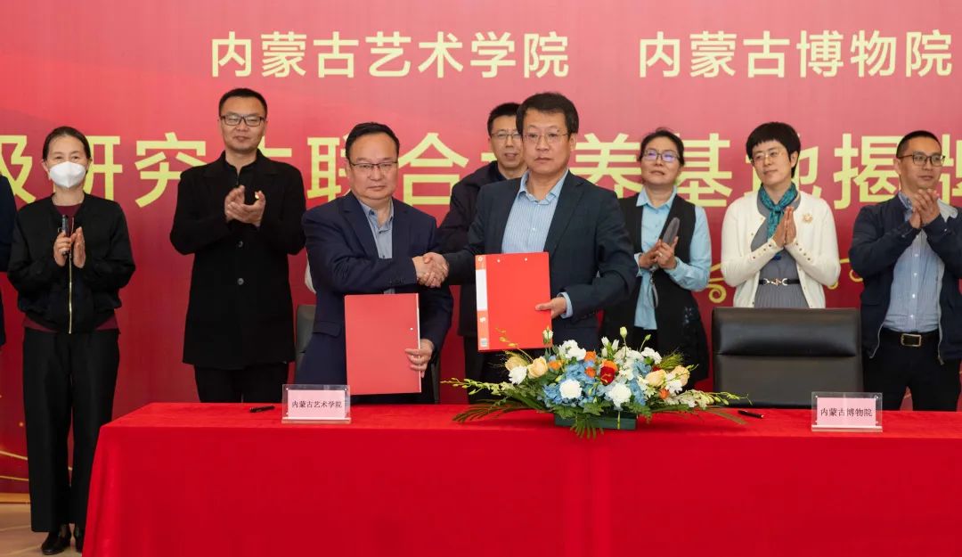 内蒙古博物院有关部门负责人员,学校党委研究生部有关同志、设计学院领导班子成员、