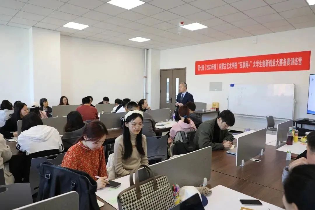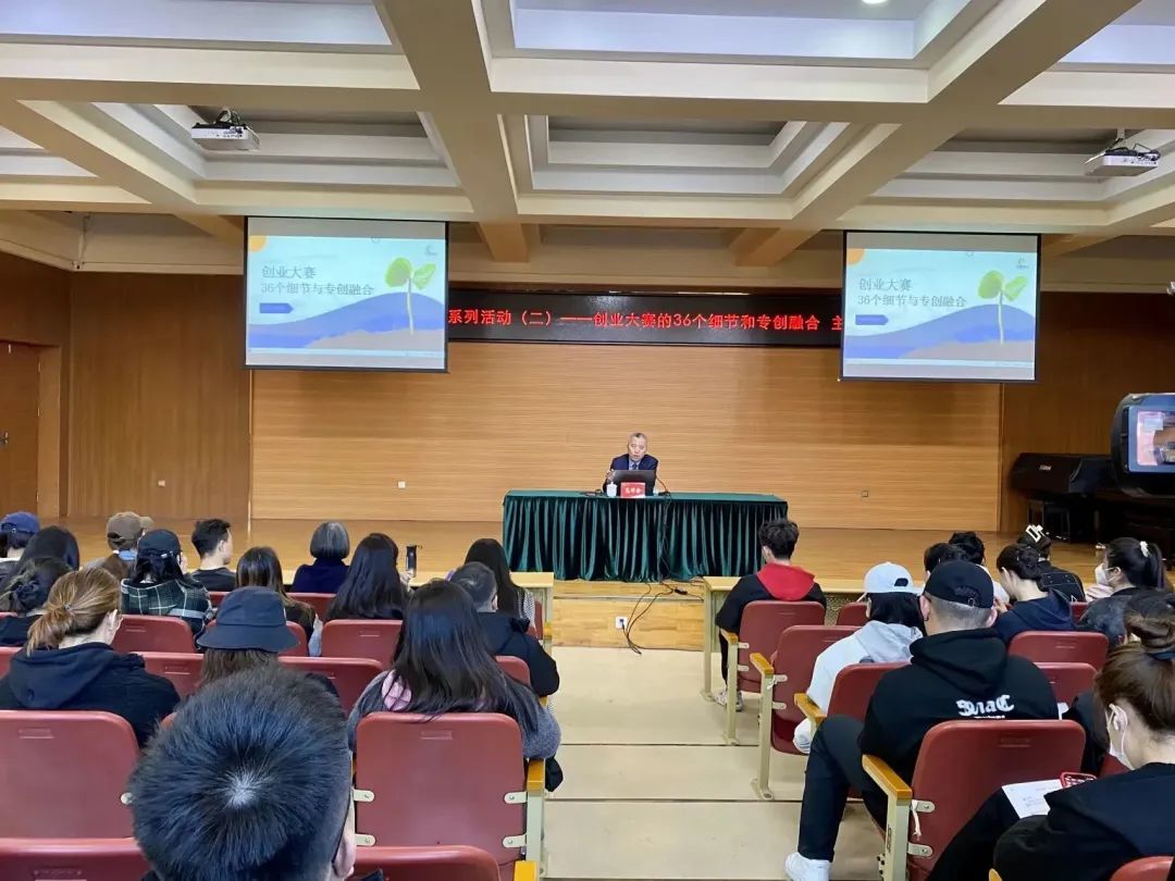 为备战第七届内蒙古艺术学院“互联网+”大学生创新创业大赛,指导我校师生做好备赛工作,4月7日下午,学校特邀教育部就业创业指导委员会委员高泽金教授,在新华校区艺术厅为我校师生作《创业大赛的36个细节及专创融合》专题讲座。学校各二级学院教学副院长、双创指导教师、大赛工作相关负责人、雏鹰计划重点培育项目组及大学生创新创业训练计划重点项目组学生、各学院部分师生线上线下共同参会。