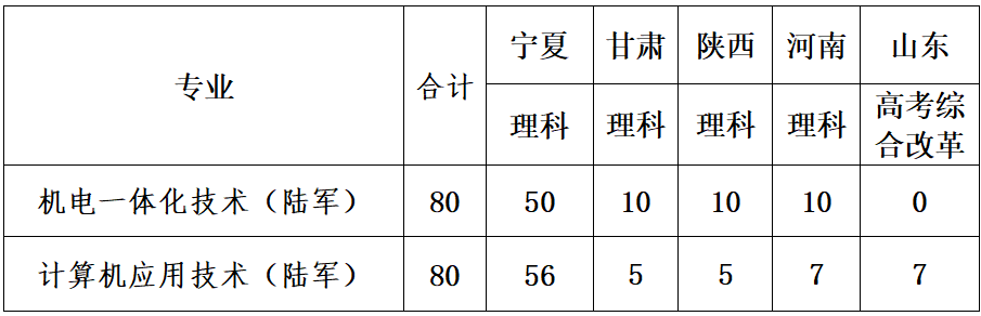 我校计划在宁夏、甘肃、陕西、河南、山东5省区招收定向培养军士160名。招生办法