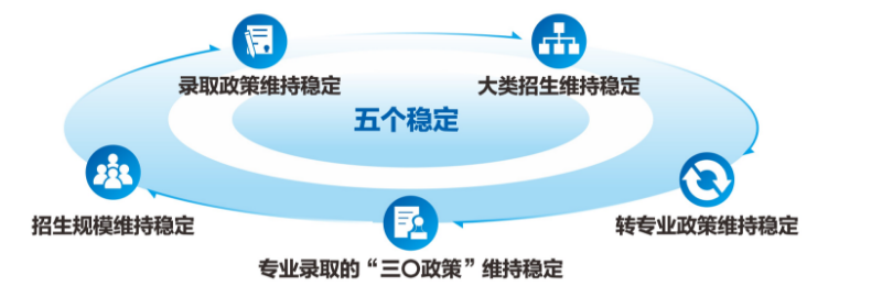 “五稳”是指我校的招生政策、录取原则等总体保持稳定,概括起来有以下五方面:
