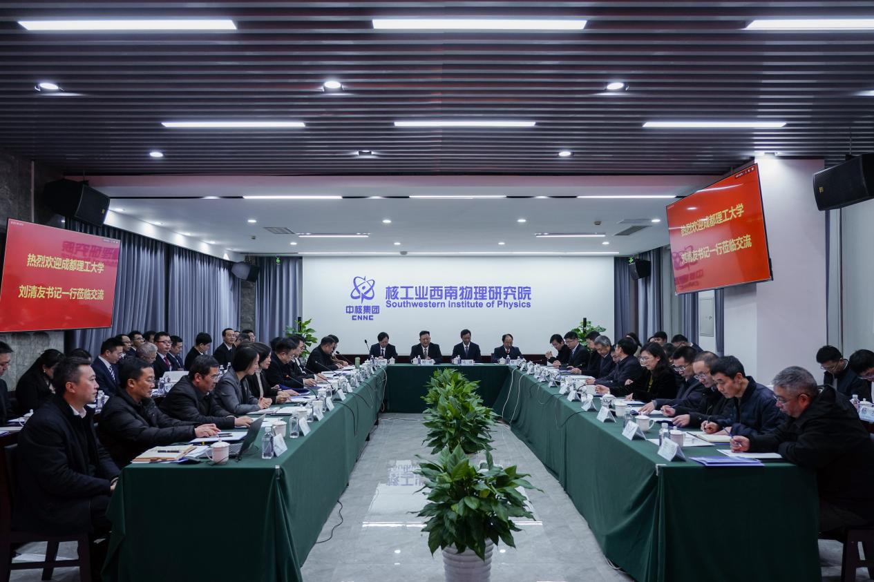 刘清友向西物院长期以来对学校建设发展给予的关心支持表示感谢,并简要介绍了学校发展历程、学科优势与办学特色。他提到,作为国家最早从事核科学与技术的重要科学研究和人才培养基地,我校在核辐射探测、核技术应用和辐射防护等方面取得了一系列高水平研究成果,培养了上万名核行业高技术人才,为我国核工业事业作出了重要贡献。学校被中国核工业集团授予“核工业人才培养突出贡献奖”,学校