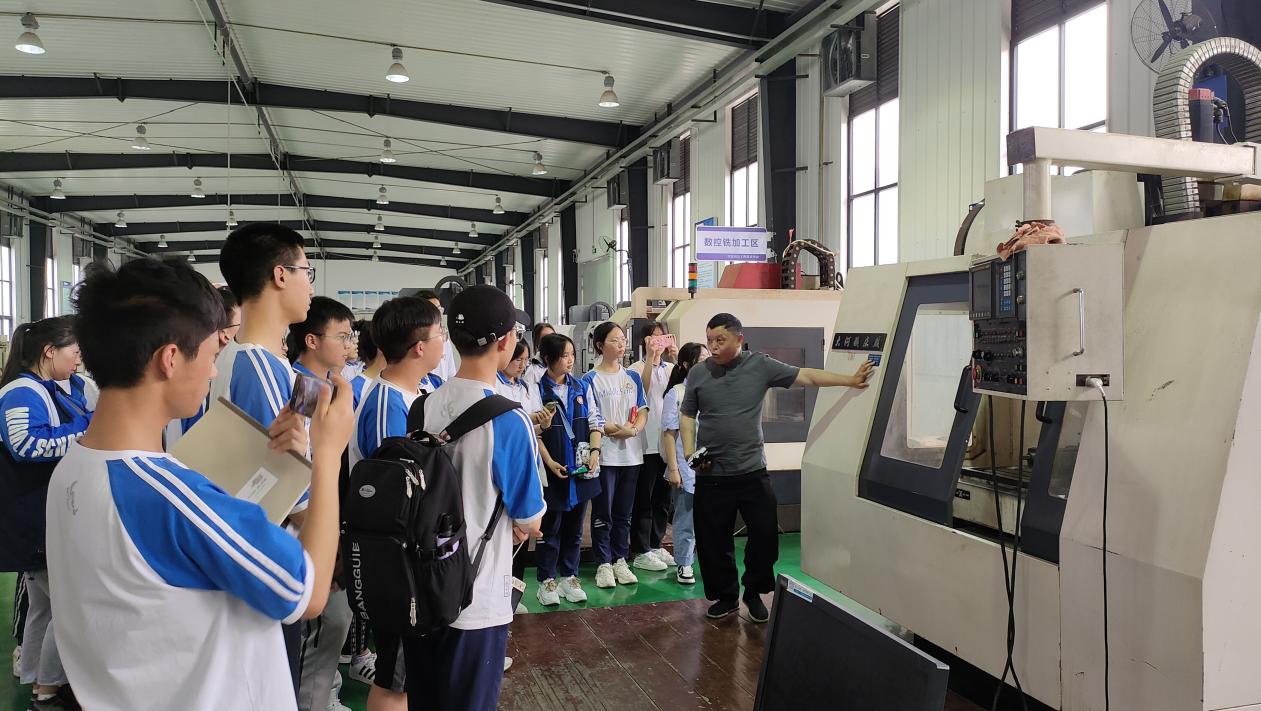 按照研学参观流程,从品尝大学食堂美食到观摩校园活动,学生们受邀进行了实地参观,充分享受了学校的学术资源。在“智能制造中心”观看了线切割和激光切割演示后,高一学生熊德松表示,在高大的钢架构大棚内,他第一次感受到了制造的魔力。在参观“电子信息实验中心”时,正巧遇到实验室的学姐学长在准备“电子设计大赛”,其中一组参赛队员给学弟学妹们演示了他们制作的循迹小车,讲解了如何进行开源设计。高二学生游楚逸说,“我经常在短视频刷到科学家做的科普视频,很感兴趣,而现在直接来到实地去观察、感受科技工作者的工作环境,实在太棒了!”