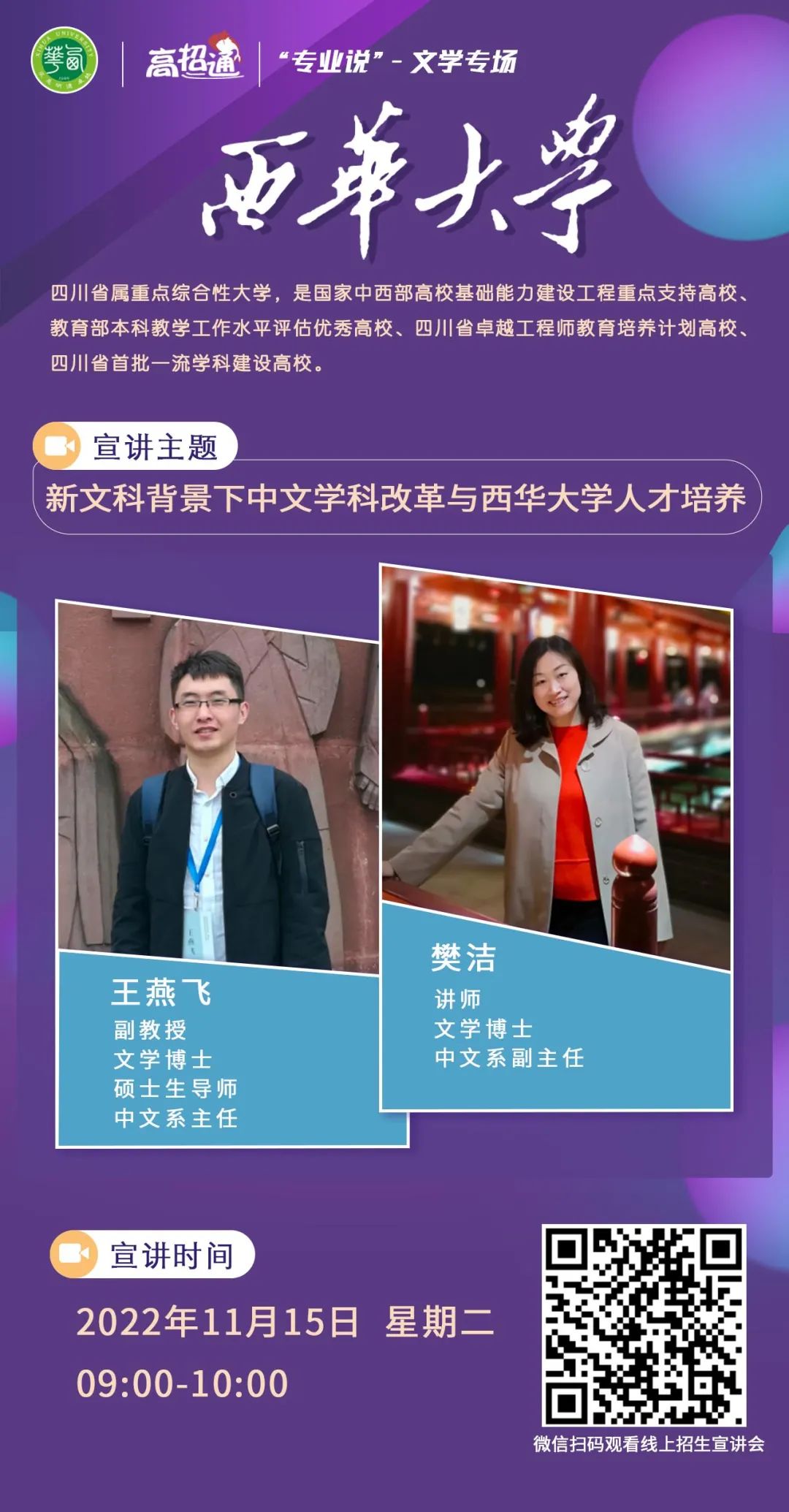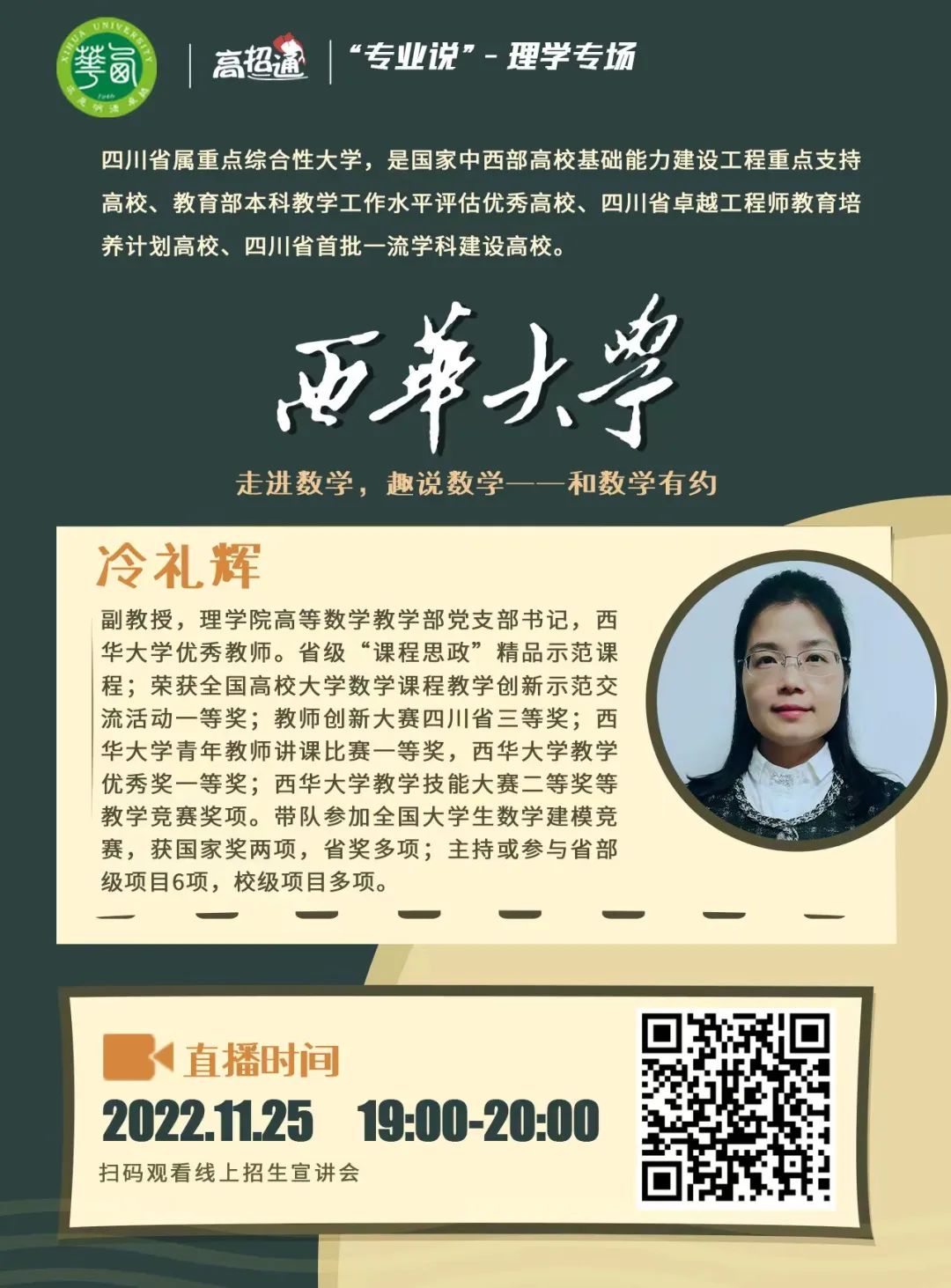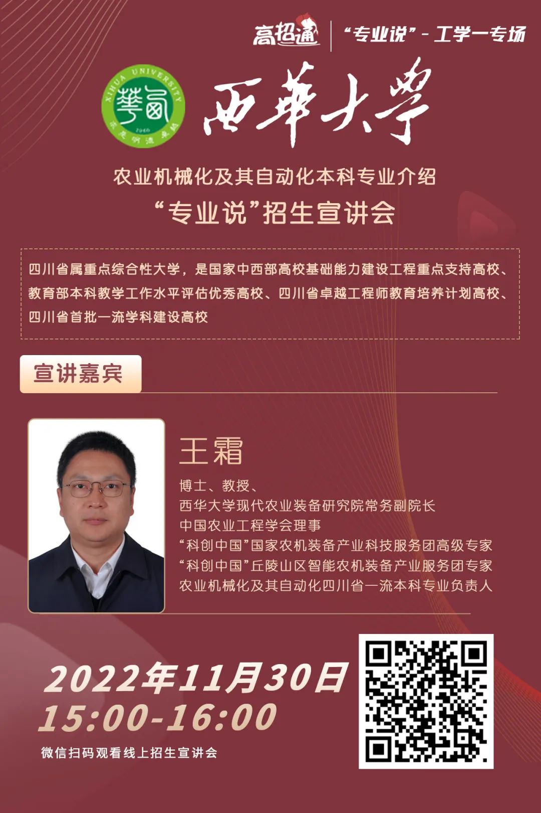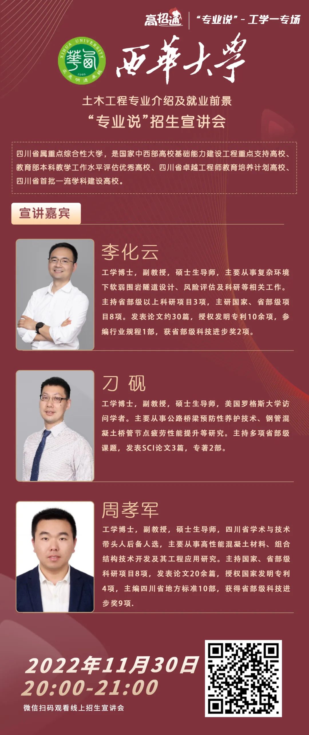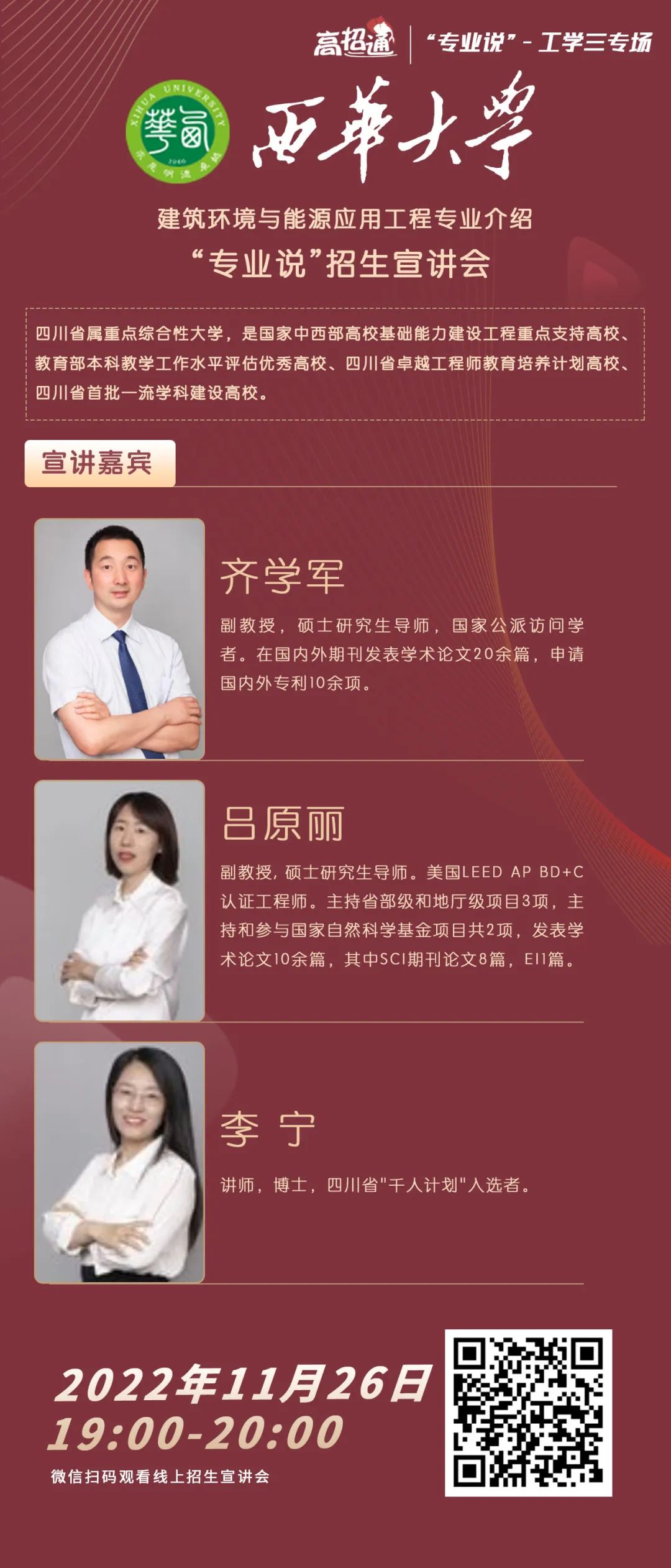 对于大学,他们说在西华,21个学院,77个专业有我,有他,有我们,在等你来西华,共成长!师说 · 专业为了帮助广大高三学子及家长做到专业选择心中有数志愿填报心里有底从2022年11月至今西华大学21个学院的77个本科招生专业陆续推出招生宣讲视频各学院专业教师解读专业实力、特色亮点