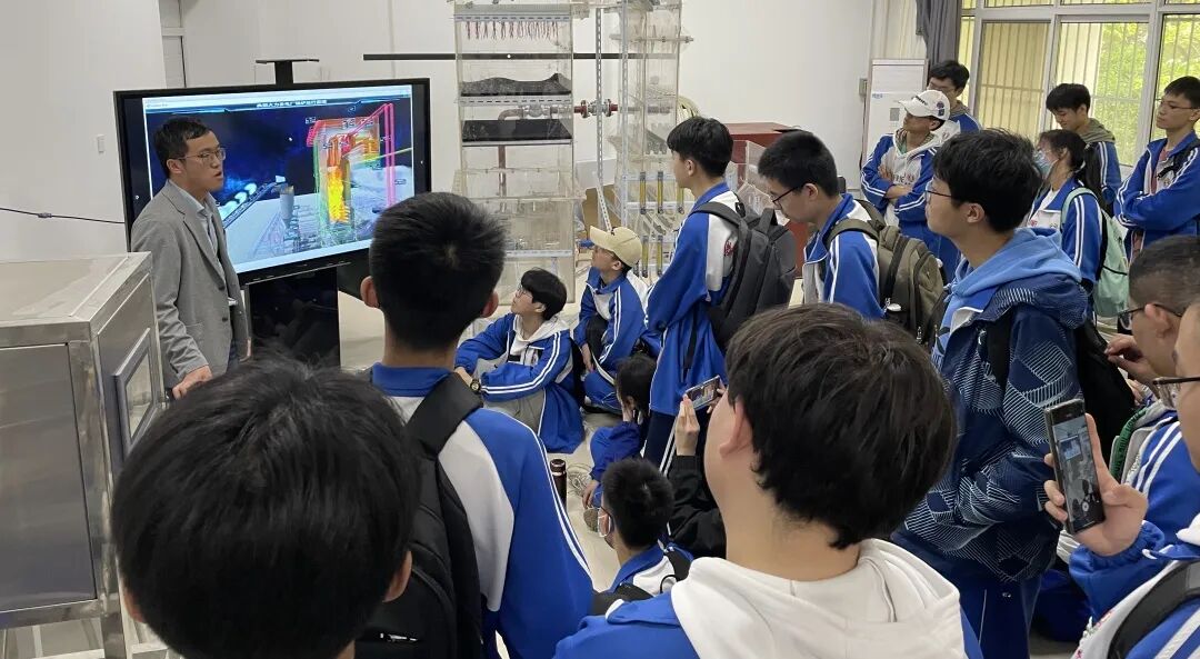 能源学部教师首先介绍了双碳战略引领、绿色能源转型背景下能源与动力工程专业的重大机遇和挑战,并以虚拟仿真3D动画形式展示了大型燃煤火电机组的工作流程。通过教师讲解与实验操作,使同学们切身体会到了能源与动力工程的独特魅力。