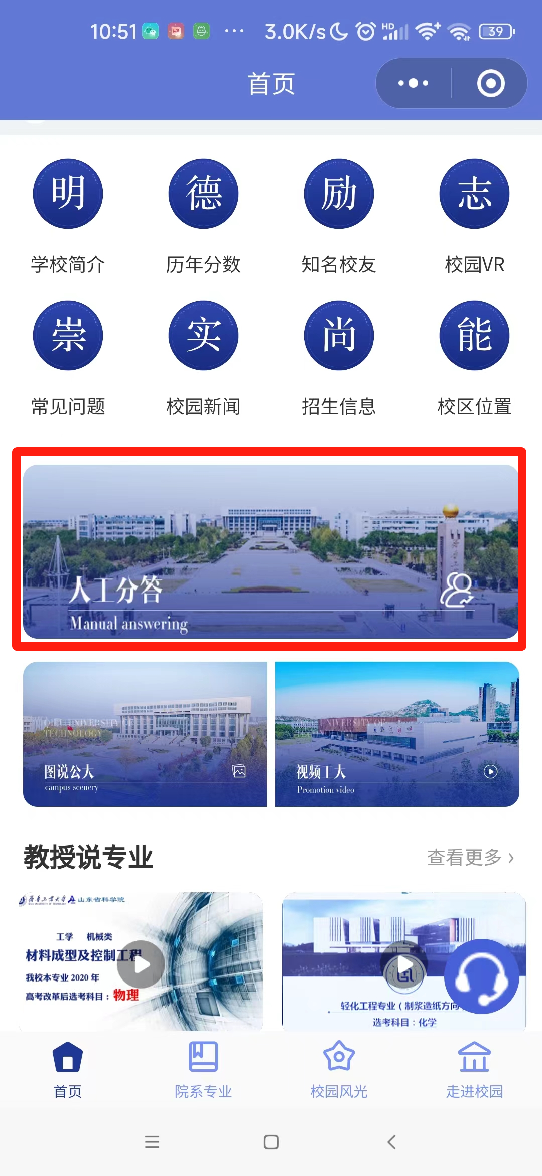 为更好地服务考生,方便考生了解我校(院)基本情况和各类招生录取信息,校(院)特推出“人工分答”系统,可与各专业