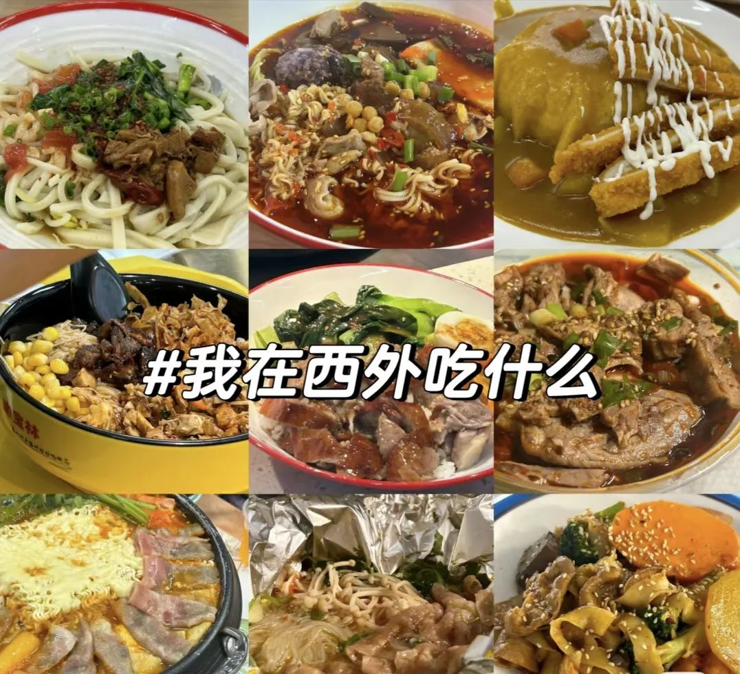 答:西外长安校区一共有两个食堂和一条美食街,美食多样、种类丰富。可以包容天南海北的学生不同的饮食口味,同时设立两个民族食堂,为