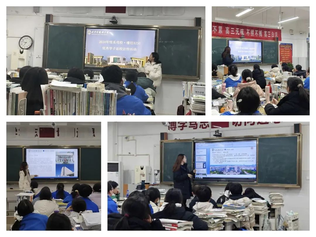 根据我校招生办相关文件精神,2024年1月18日下午,团队一行人回到渭南市杜桥中学开展招生宣传工作,经过前期认真落实和组织宣传,高三学子热情高涨,反响热烈。在活动中,我们主要围绕回访母校、宣传XISU以及助力高考等三个维度展开。首先,我看望和问候了各位老师,就大学期间的学习和工作情况做出细致汇报。其次,我为200名高三学子详细介绍我校办学特色、招生政策、校园生活等等。除此之外,我结合自身的经历,为高三学子答疑解惑,助力高考。本次实践深入扩大了我校生源地影响力,勠力践行了朋辈帮扶理念,蓄力提升了自身综合实践能力。今后,我将继续矢志笃行,赓续梦想,不断奋斗。弥思甜: