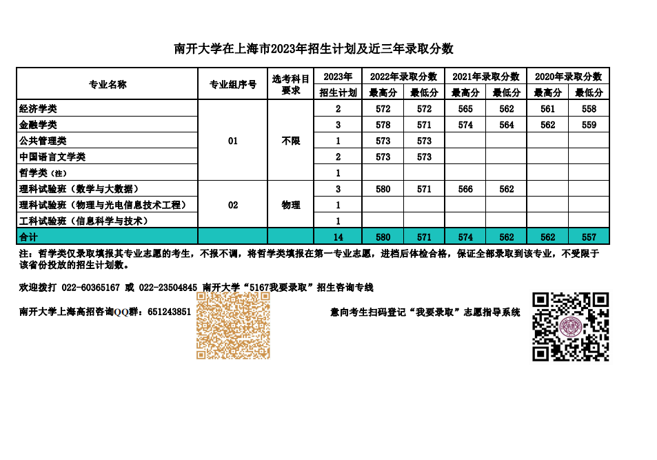 南开大学在上海市2023年招生计划及近三年录取分数.pdf
