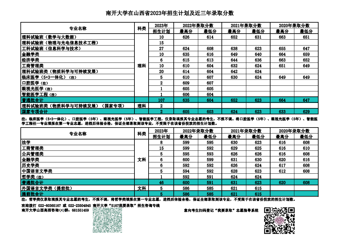 南开大学在山西省2023年招生计划及近三年录取分数.pdf