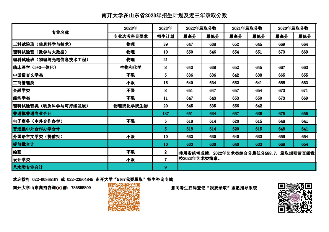 南开大学在山东省2023年招生计划及近三年录取分数.pdf