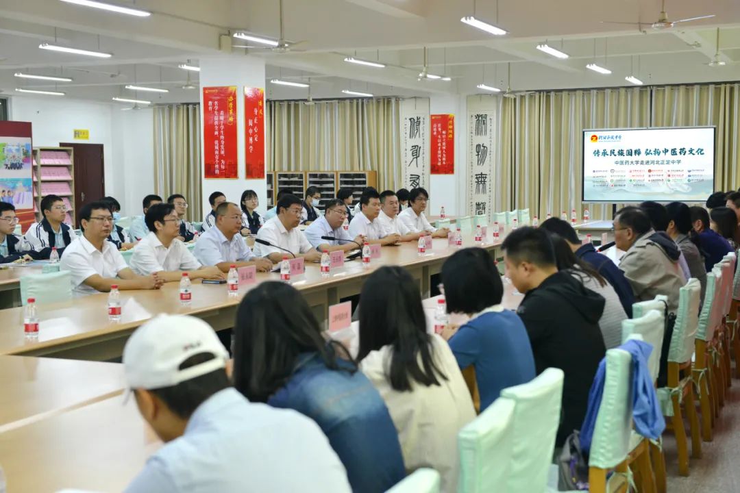 9月26日,我校参加全国中医药本科招生交流峰会,与河北中医药大学、北京中医药大学、上海中医药大学、南京中医药大学等全国21所中医药大学招生宣传组共同走进河北省正定中学,开展“中医药校园行”活动,与正定中学领导、师生座谈,弘扬中国传统文化,提高青少年对中医药的认知,帮助广大青年学子深入了解中医药、热爱中医药、投身中医药事业。正定中学党委书记周庆、校长焦志诚、副校长王永昆及学生发展、招生、宣传部门负责同志,高三年级主任、优秀高三学生代表参加座谈会。
