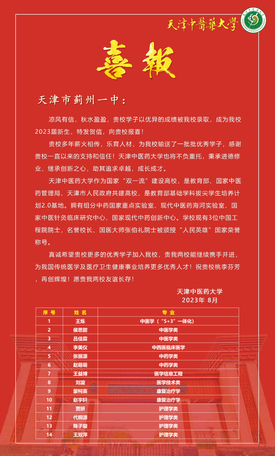蓟州区第一中学位于天津市蓟州区,始建于1941年,1945年为人民政权所接收, 20世纪50年代就被定为河北省重点中学,1978年又被定为天津市首批重点中学,是一所具有光荣传统和办学特色的市级示范性高中。
