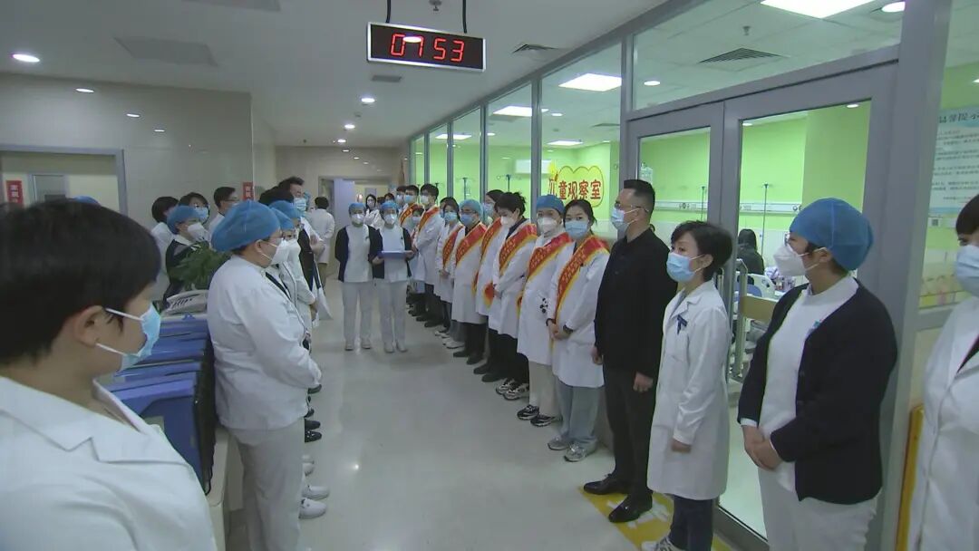 院领导、相关职能科室负责人及志愿者参加儿科急诊早交班