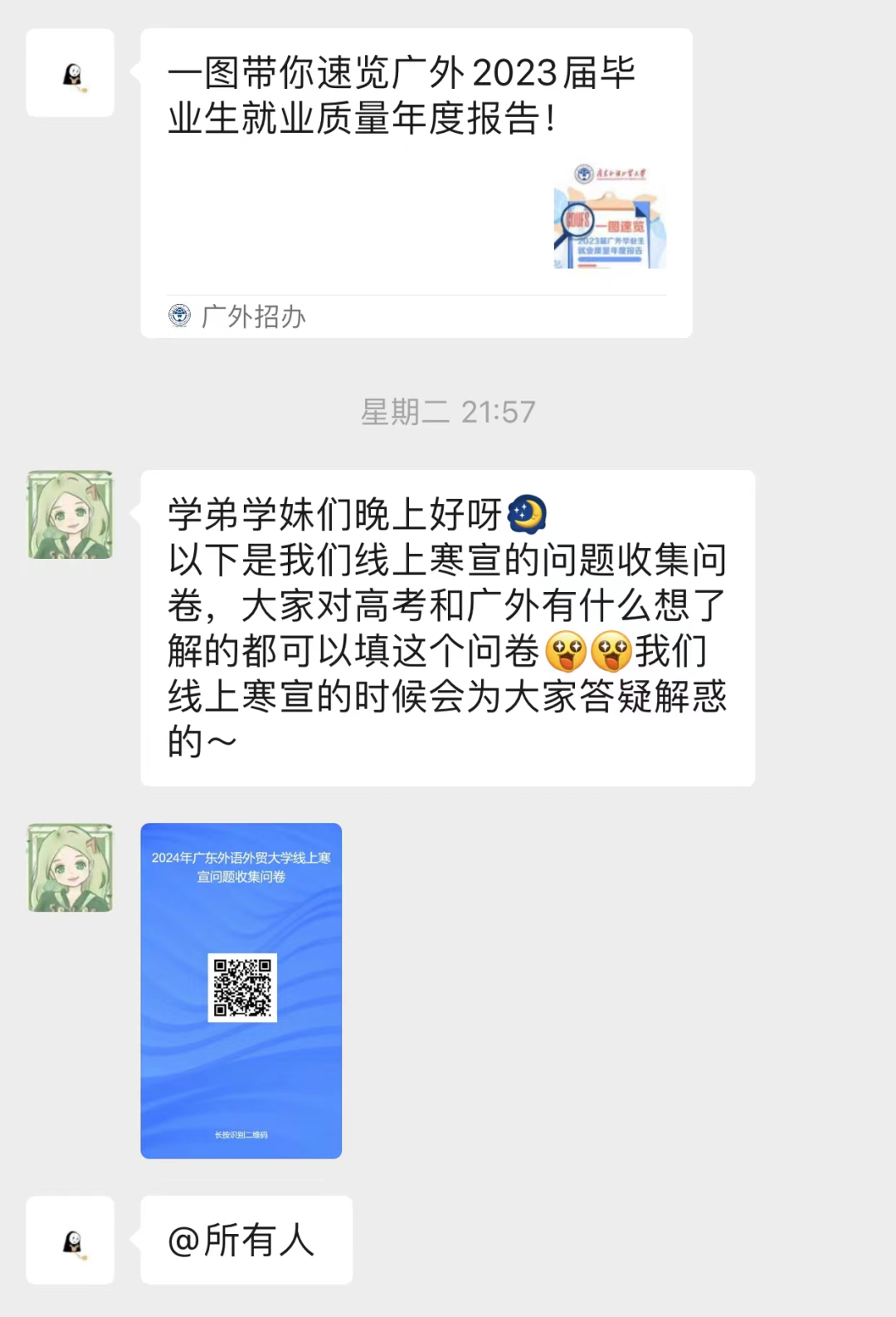 而且,在线上宣讲会前,我们在咨询群中向学弟学妹以及家长们收集疑问,以便在宣讲中针对性解答,让广大学子和家长们更好地了解广外。