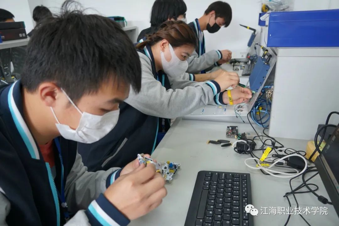 在江海,职业教育活动如火如荼。5月8日起,校级技能成果展开启,数控车、数控铣、3D打印、CAD等成果精彩呈现;局域网组网、PLC仿真、电子趣味产品等竞赛成果精心展示;建筑模型制作、钢筋工技能、建筑工程识图算量等竞赛成果集中亮相;青年创客社海报设计策划、电子沙盘模拟经营、中餐摆台生动展现;摄影、景观设计、文创作品、书法美术作品纷纷展出。一幅幅职业教育生动景象呈现在师生面前。一直以来,江海学院一直坚持以赛促教、以赛促学、以赛促训、赛训结合、强化技能、知行合一,促进师生综合素质全面提高。近年来,学校创办“职业技能竞赛会、人文素养比试会、体育运动竞赛会”活动,首届“三会”共开展35个赛项,包括职业技能竞赛项目23个,人文素养比试项目7个,体育运动竞赛项目5个,覆盖该校所有专业。这次职业教育活动周活动,各二级学院分别开展了“平面职业技能竞赛”、“钢筋工技能竞赛”、“工业机器人竞赛”、“我是主播”电商直播/短视频创新创业技能竞赛、仓储环境检测技能竞赛、英语单词比赛、舞动青春技能竞赛等,推进各类赛事成为学校教育教学改革的“风向标”、专业建设和师资培养的“助推器”。 学习与就业“零距离”,数千名优秀毕业生进入知名企业