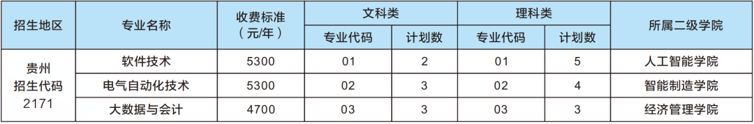 注:具体招生专业,计划数及收费标准以贵州省教育厅公布为准