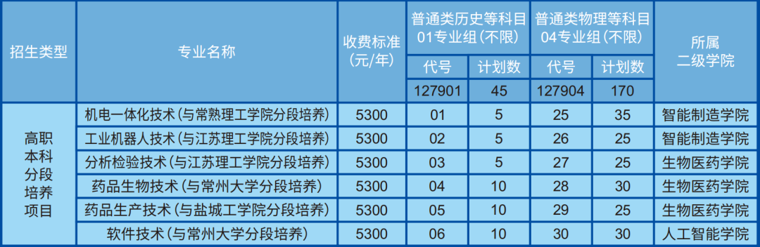 经江苏省教育厅批准,我院与常州大学合作开展“高职与普通本科分段培养”(高本衔接)项目。本项目在苏州健雄职业技术学院学习五年,前三年高职阶段教育考核(全省统一专转本考试)合格者,后两年本科阶段教育继续在高职院校内学习,由普通本科与高职联合教学,毕业后颁发常州大学本科文凭。