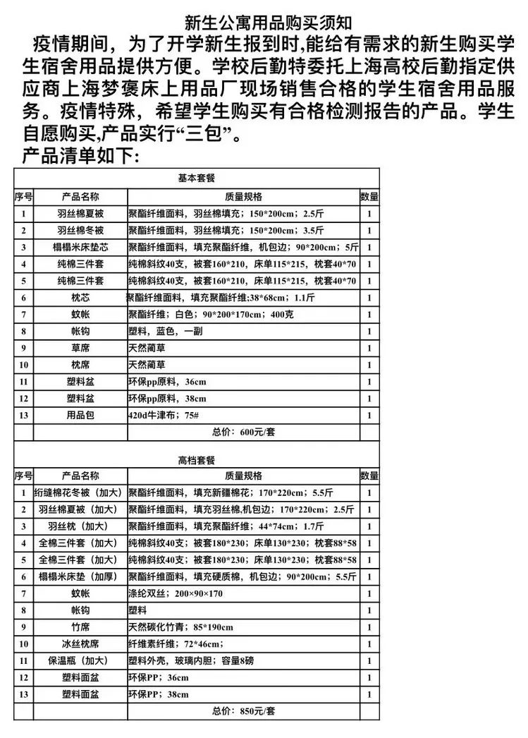 学校设有住宿用品购买点(可根据实际需求自愿选购相关所需物品)。