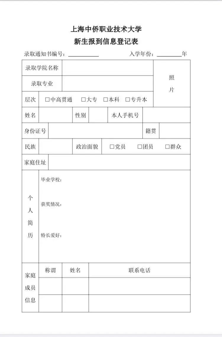 新生可点击图片提前下载“登记表”填写,并于当天递交“登记表”。