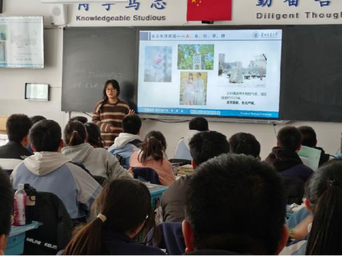 甘肃省武威市凉州区第六中学教育集团招生宣传由2023级数理学院邱小玲完成。邱小玲同学从地理位置、学校概况、教资力量、招生情况和就业情况等几个方面介绍了兰州交通大学,并给同学们发放了宣传品,与他们进行了充分的交流。同时针对同学们较为关注的志愿填报及大学生涯规划等问题进行了解答,激发了同学们在高考复习中的热情和报考兰州交大的激情。