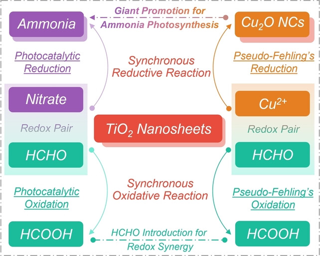 论文1. Dynamic in situ Formation of Cu2O Sub-Nanoclusters through Photoinduced pseudo-Fehling’s Reaction for Selective and EfficientNitrate-to-Ammonia Photosynthesis