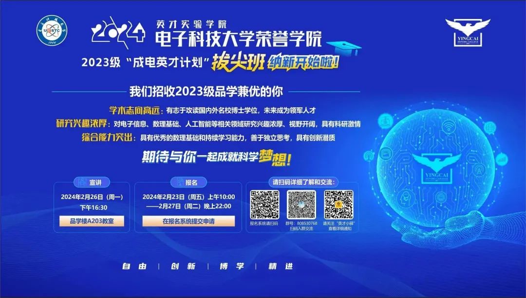 选拔2023级品学兼优的学生,期待与你一起成就科学梦想!