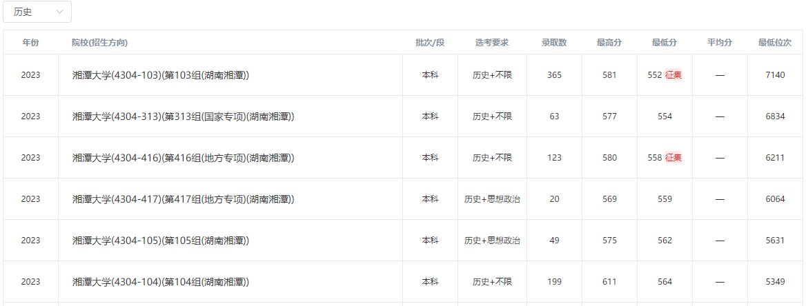 2023年湘潭大学在本省录取分数线: