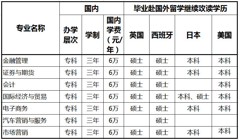 1 | 2+2对接项目,专业以商科和管理为主。 |