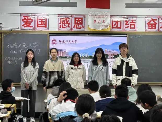 ——“能在寒假回到高中母校宣讲现在就读的大学,我们感到万分荣幸。在这次宣讲过程中,我们与福建师大的联系更加紧密,切实全面的了解到了福建师大的办学特色。同时福建师大的返校宣讲活动,给予我们一个锻炼自己的机会;在这次活动中我们学会了团队合作,大家共同为小组集思广益,用自己擅长的事为小组作出贡献。”