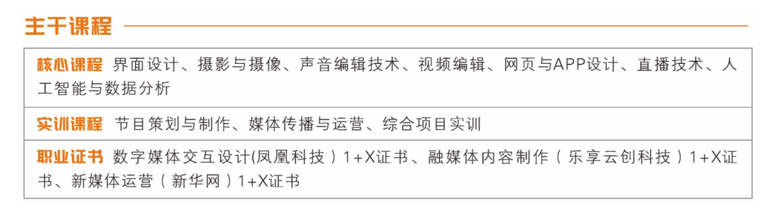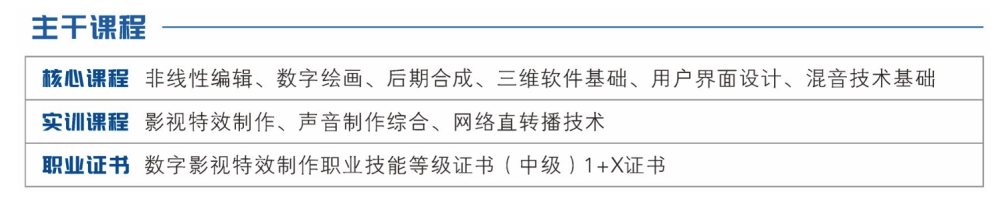 本专业主要培养能够从事视听媒体内容制作与转换、音视频直转播技术、视觉媒体音频混录技术、