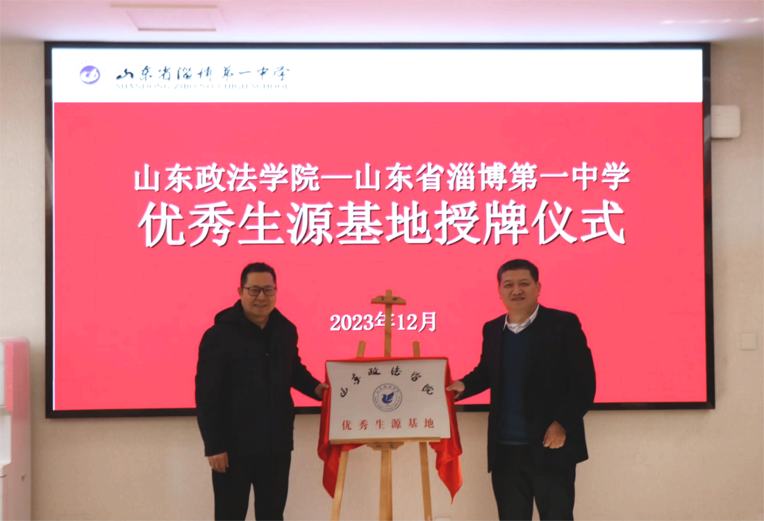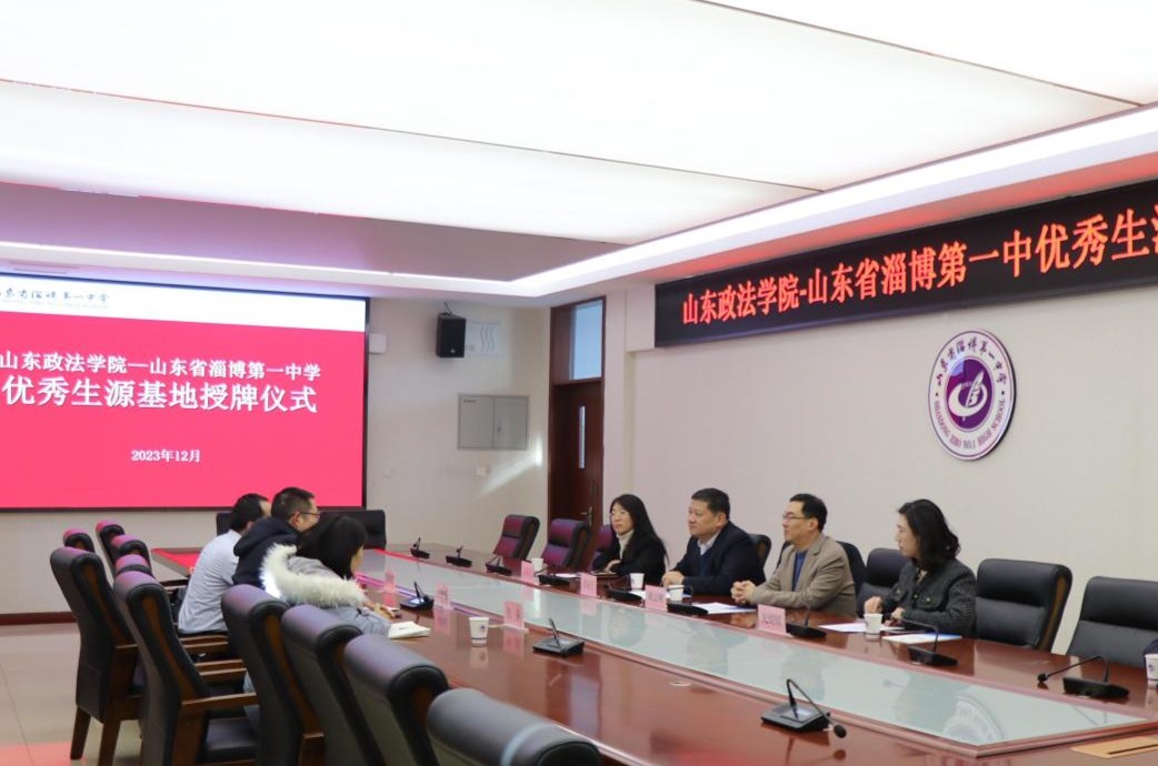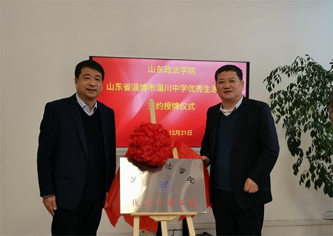 12月21日,山东政法学院党委委员、副校长蒋海升一行赴淄博市博山区、淄博市淄川区,在山东省淄博第一中学、淄博市淄川中学分别建立优秀生源基地。淄博一中党委书记刘加成,淄川中学党委书记王明胜,民商法学院院长陈志刚,两所中学及民商法学院相关负责同志参加优秀生源基地签约授牌仪式。
