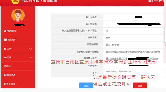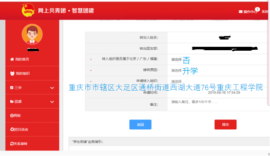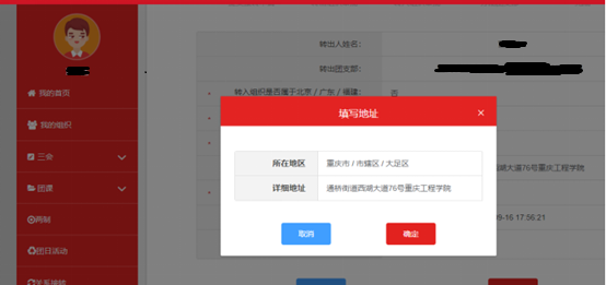 注意是大足双桥的校区不是巴南南泉的,点击确认后,根据下述地址填申请转入组织:重庆市巴南区