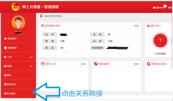 在图片左侧最下端有一个关系转接点击进入(若登录进去没有看到,可鼠标在左侧滑动下移找到)。