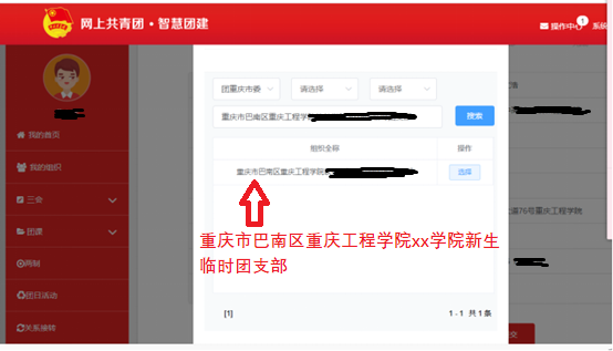 注意事项:请选择区域只选择第一个“团重庆市委”,后面两个均不用选择,直接到输入页面输入“重庆市巴南区