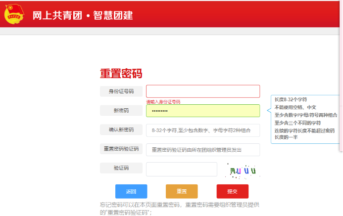 注意事项:密码若没有改动过即为身份证后八位,若有改动即输入改动后密码;若密码改动过后忘记,需要联系曾就读的高中班级团支部书记询问重置密码验证码,进行改密码重新登录账号。(改密码在上图的右下角“忘记密码”点击进入)。若以上改动密码依然不可以登录,请电话咨询02362846693