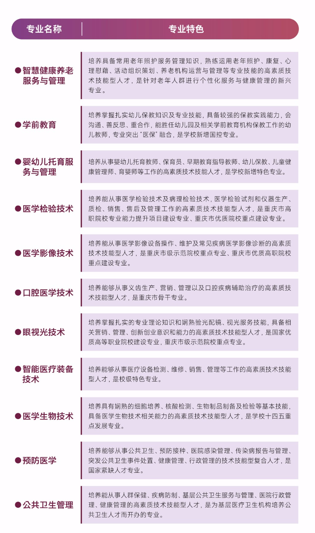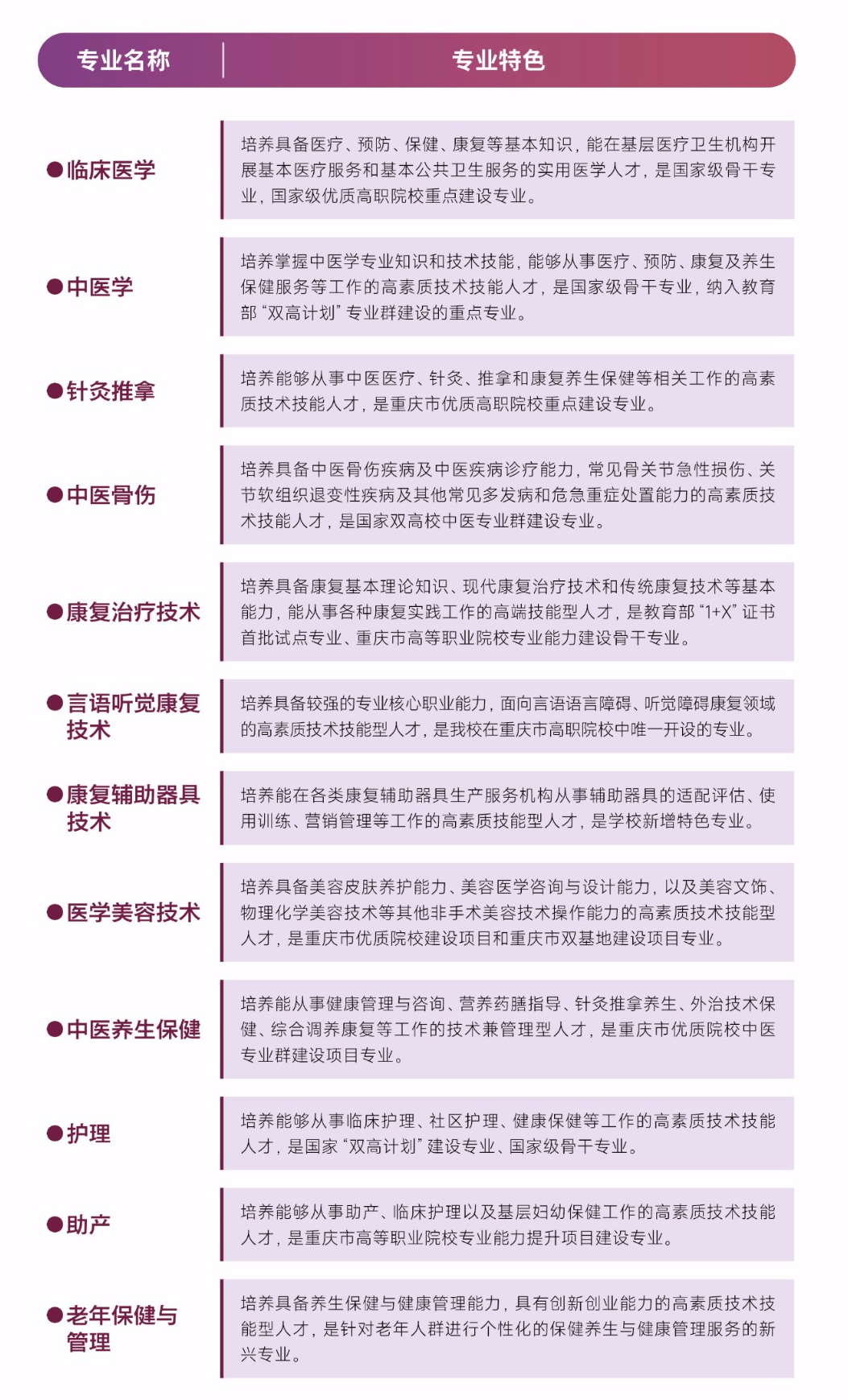 小编精简了学校各专业简介