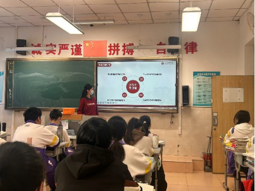团队首先对师大的概况以及招生、资助等方面进行了介绍,通过视频以及图片分享的形式展示了师大充实多彩的校园文化生活。随后,团队成员分别对自己所学的专业进行了简短的介绍,并分享自己高中时的经验与教训。活动中,同学们积极参与,提出问题和分享自己的观点。这种互动性不仅增强了团队的宣讲效果,也使同学们更加深入地了解了此次宣讲的主题。
